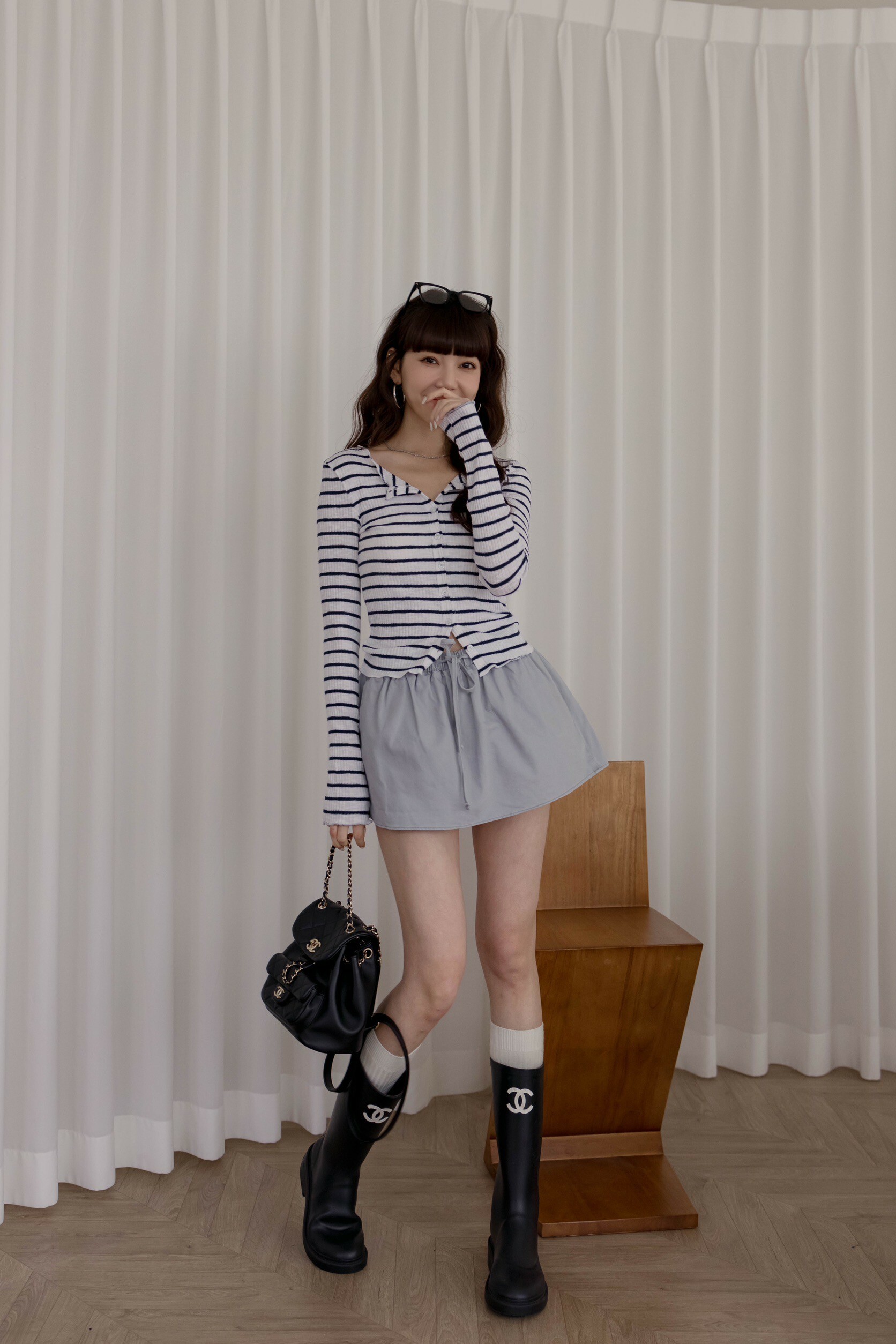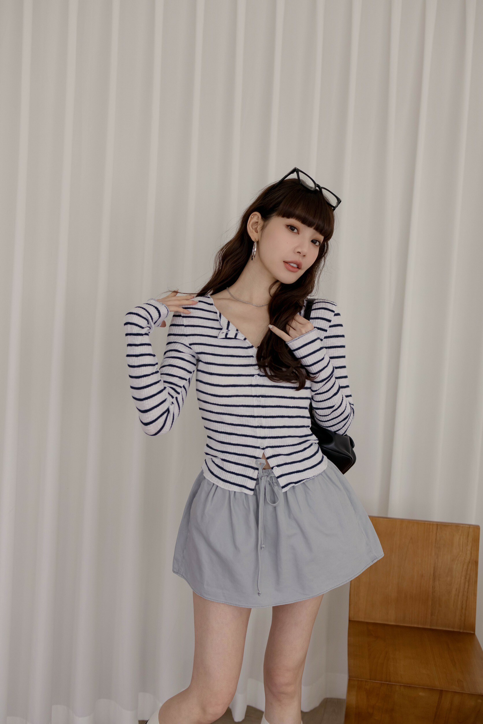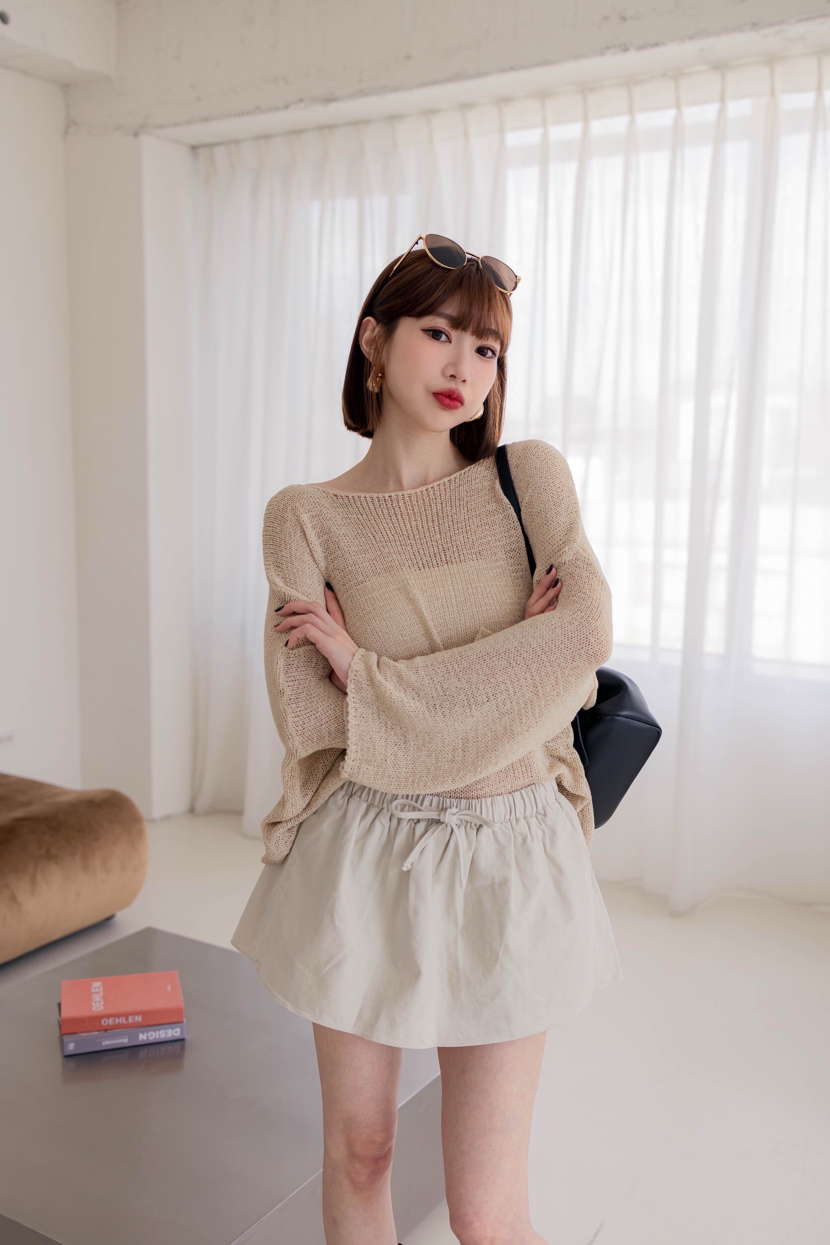 方形穿搭照為『杏/灰藍』