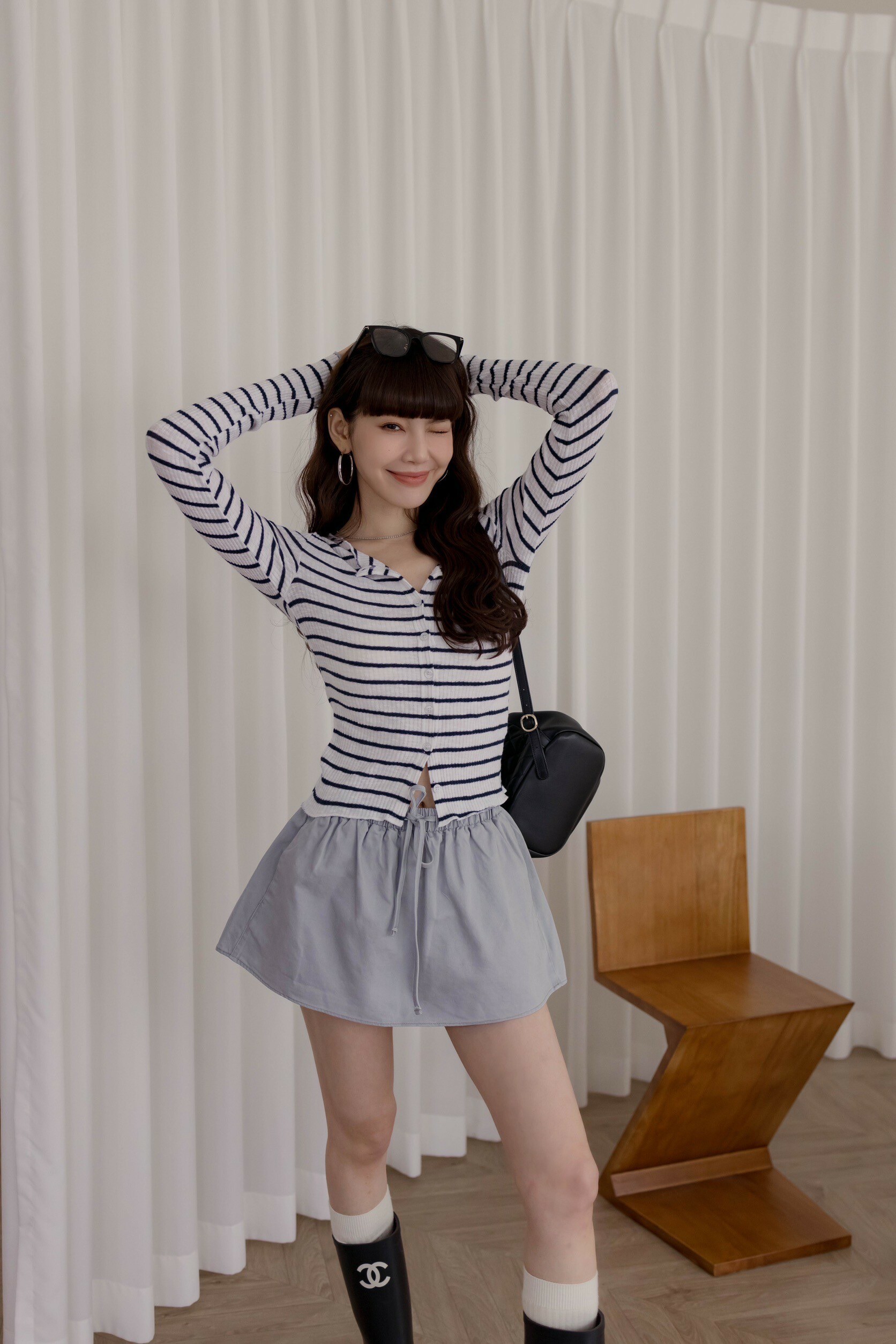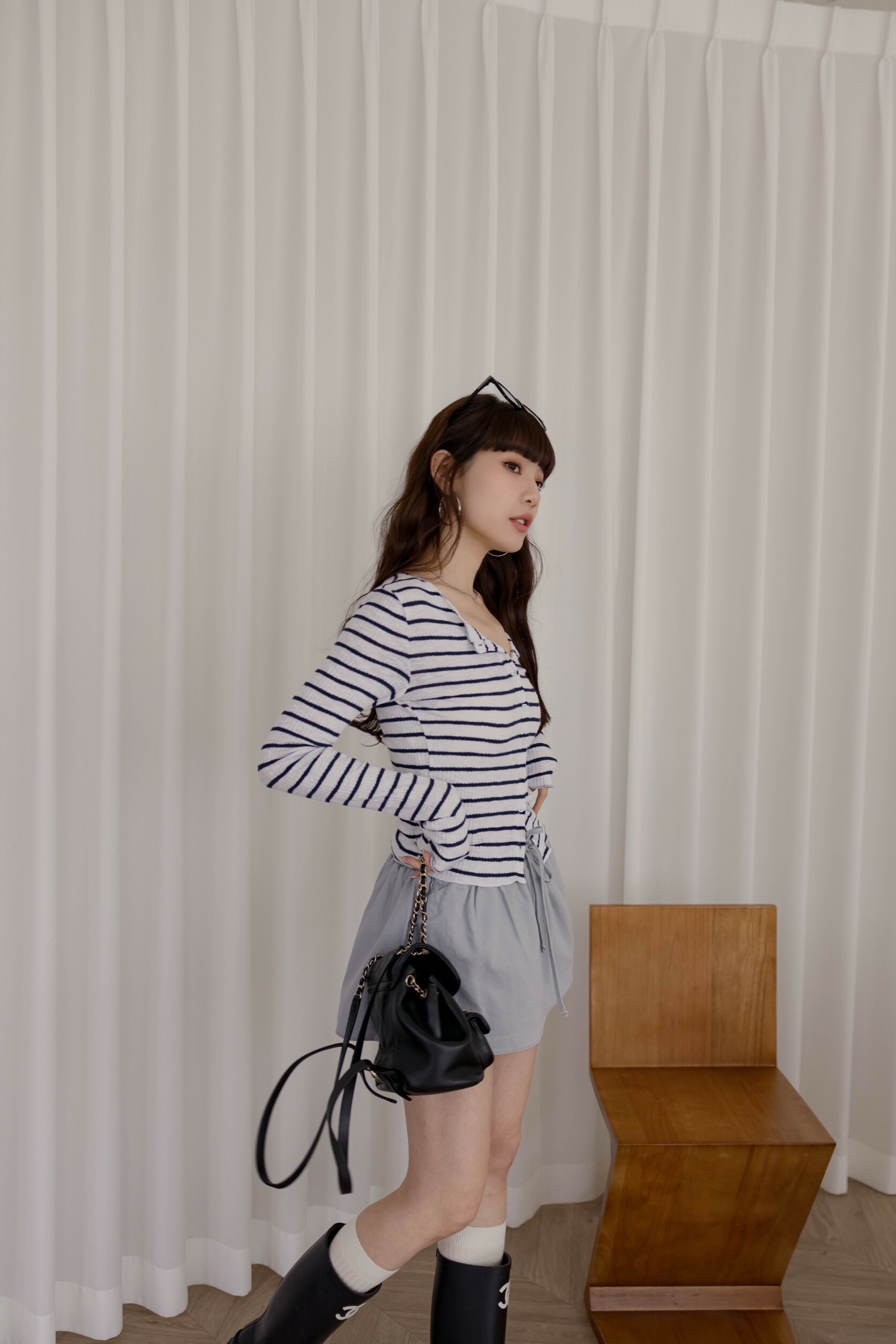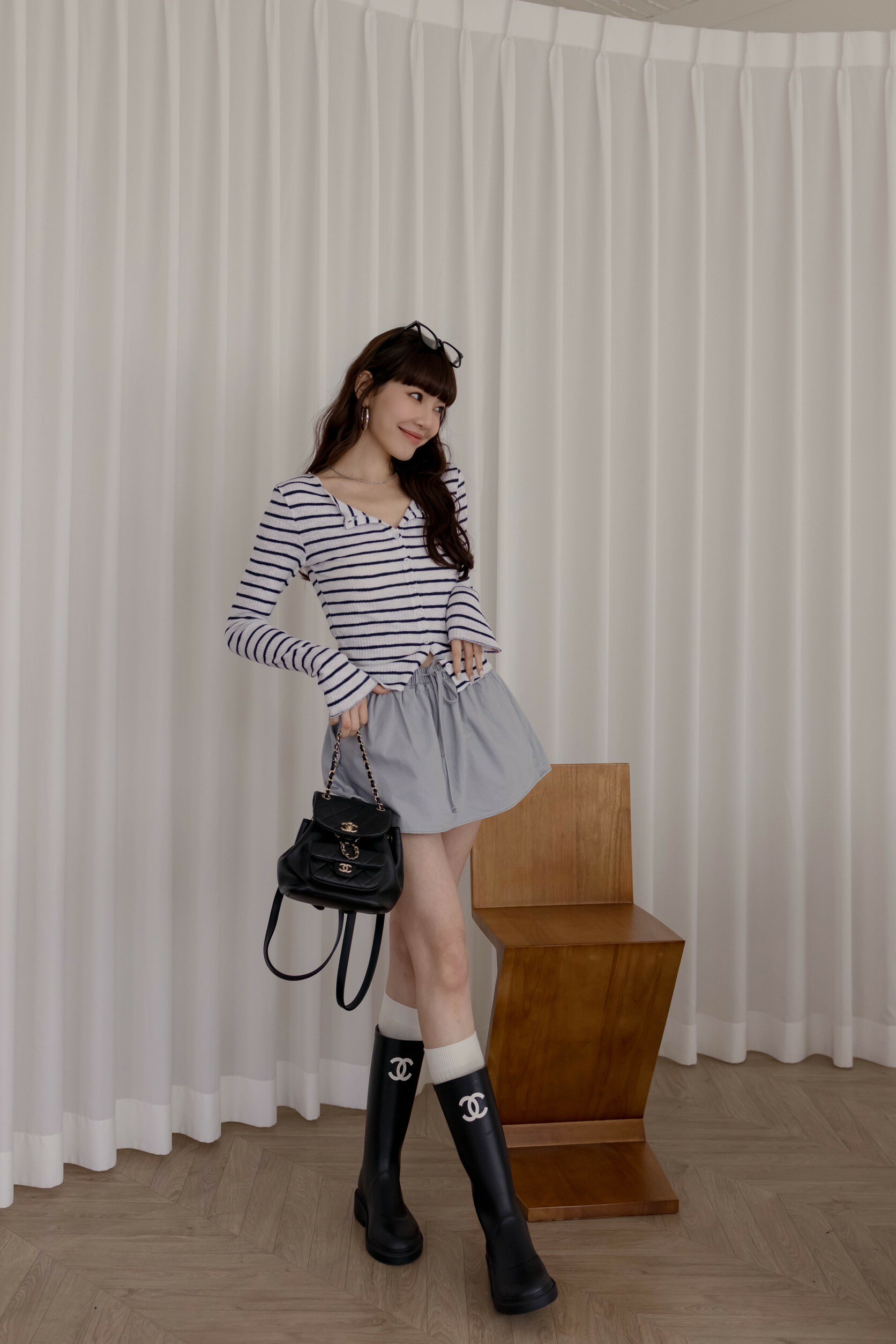 方形穿搭照為『杏/灰藍』